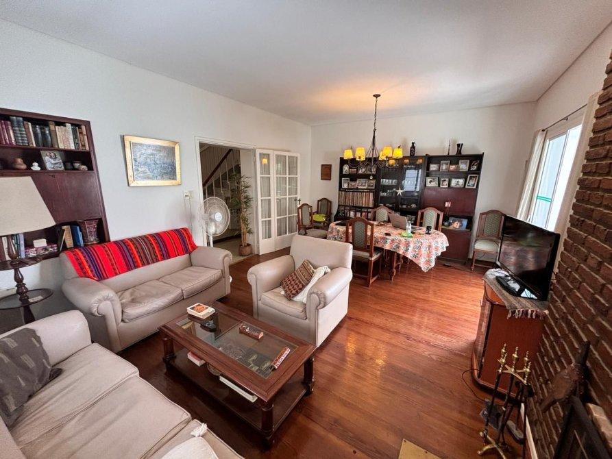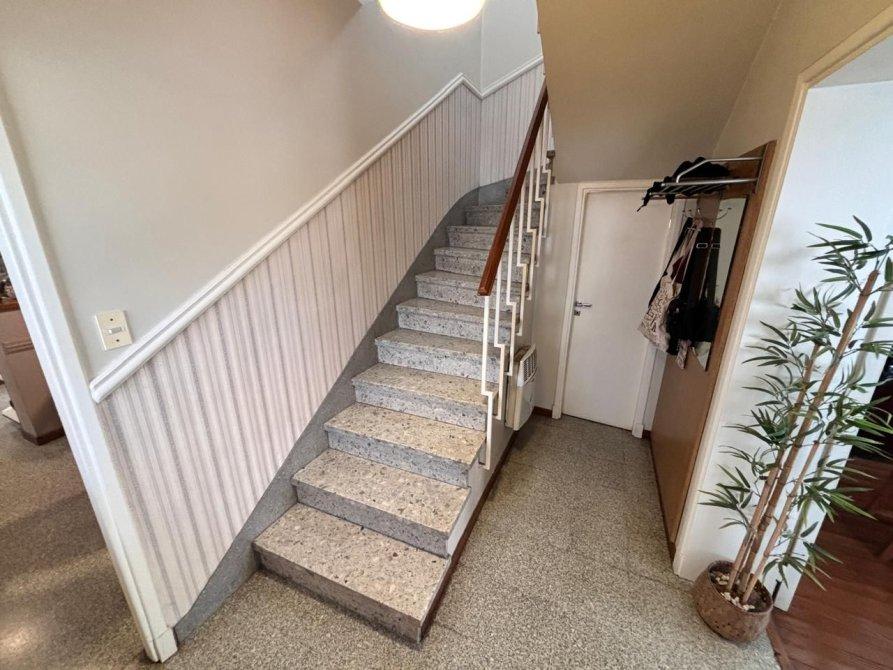 Se accede al mismo por pasillo; cuenta con hall de ingreso hacia la cocina comedor integrada por una amplia barra desayunadora; gran living comedor con pisos de pinotea en excelente estado y con salida al parque; toilette de recepción; en planta alta, tres dormitorios con placard y ventilación (dos de ellos con pisos de parquet y el tercero con pisos flotantes); baño completo con bañera; galpón cuarto de enseres con termotanque que abastece a la propiedad y con baño.