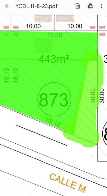 Medidas: Lote 873: 21.50 x 30m = 443m2