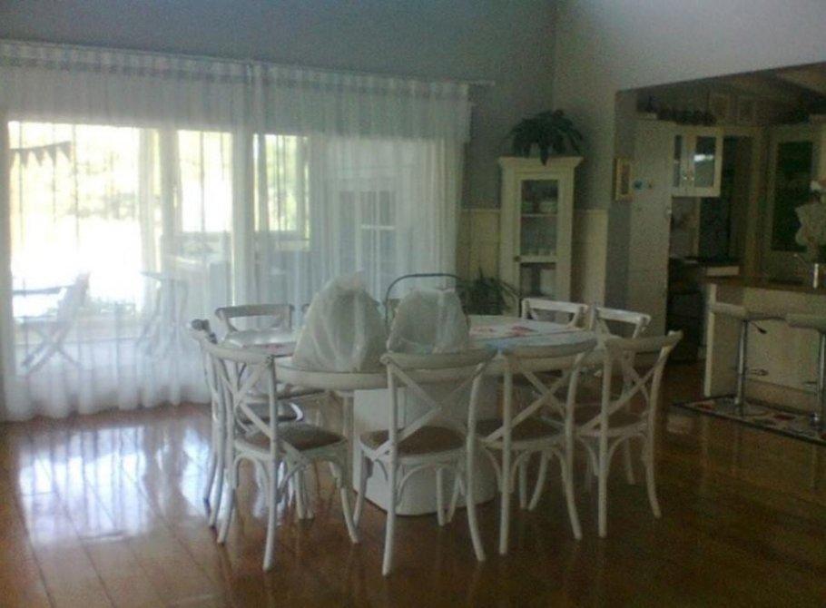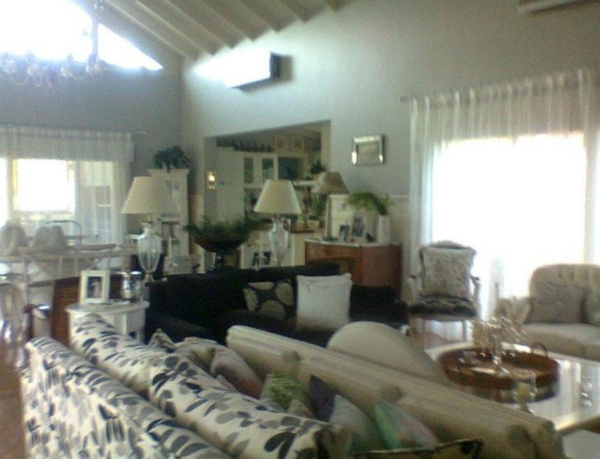 Living Comedor: con Pisos de Castaño Americano. galería semicubierta, techo de madera a la vista blanco. Hogar Westwood por convección con parrilla. Todas las aberturas con doble vidrio (DVH), Calefacción por radiadores equipo Peisa, agua de servicio por termotanque. Boiserie en madera laqueada, Muebles de cocina Johnson, isla con bacha y cocina industrial de 5 hornallas, con breakfast y placard; purificador Maraldi. Mesada de Corian, office con alacena con cristal, lavadero con puerta corrediza , despensa. Baño tipo vestuario y ducha revestido con micro cemento Edfan. Quincho: Horno de fundición a leños Maje con leñera, Breakfast en L con pileta y deck. Solarium con piscina de aprox 5,50 x 9,50, climatizada e iluminada con ducha externa. Entrada por galería, hall distribuidor con split, toilette de recepción, compartimentado con ducha con mampara. Suite huéspedes: Dormitorio con boiserie placard tipo Johnson,split frío calor, living privado con split frío calor Suite principal: Vestidor tipo Johnson, baño con jacuzzi doble, ducha con mampara y Deck de madera. Baño Instalado. Dormitorio con split frío En Sótano: Cava para la guarda de vinos y espumantes. Planta Alta: Suite con placares con puerta ventana con salida al balcón, placard con frente de espejos, splits y dicroicas. Baño con vanitory, espejo, ducha con deck, revestido en cemento alisado al igual que la mesada. Segunda Suite con puerta ventana al balcón, split Frío Calor, cuarto de vestir con ventana con vestidor con escritorio, baño con mesada de madera con estantes y dicroicas con ducha y deck. Tercera Suite: Vestidor, dormitorio con paño fijo y puerta ventana al balcón, baño con vanitory y bacha, ducha con deck. Sistema de calefacción Peisa y termo Europa, cisterna, canilla y riego por aspersión. Cochera para 3 autos semicubierta. Casa de huéspedes: Living cocina lavadero muebles sobre y bajo mesada, acceso a planta alta por escalera dormitorio y baño en suite con dos split frío calor, calefacción y comandos para exclusa de riego. Galpón. Garage para dos coches, fosa iluminada y mesada. galponcito jardinero.