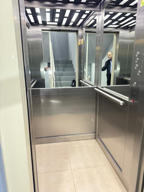 El  ascensor es amplio, rápido y moderno.