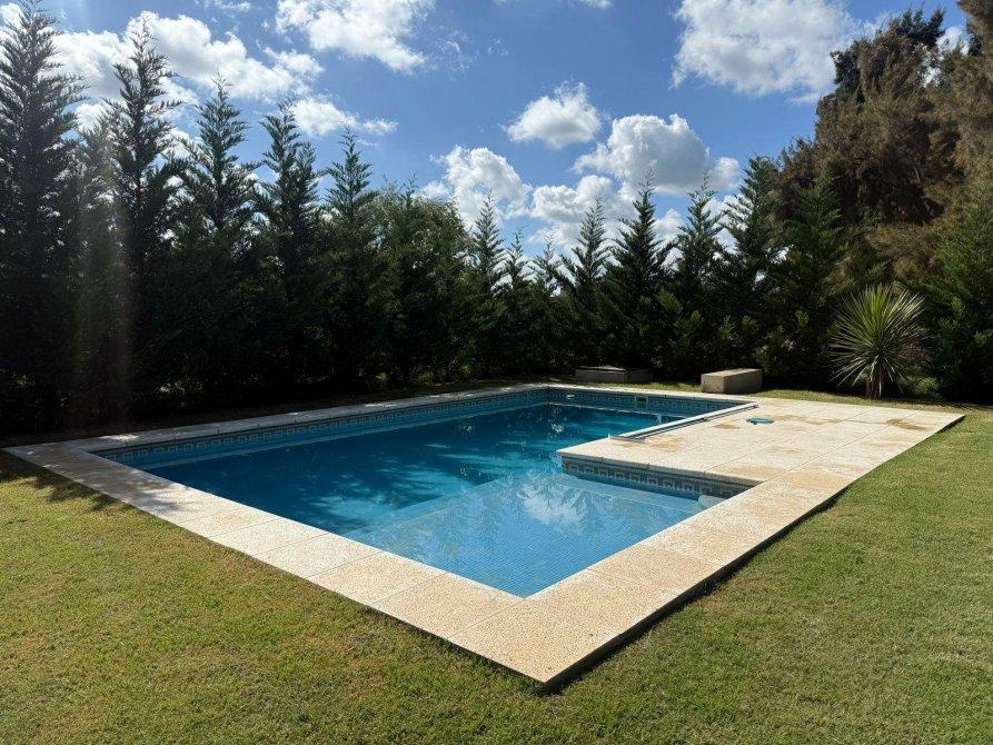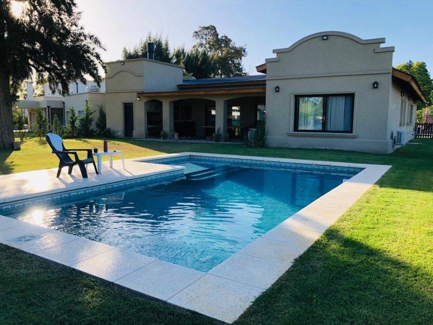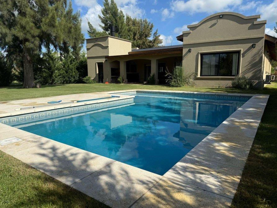 AMPLIO LIVING COMEDOR, HALL DISTRIBUIDOR, COCINA INTEGRADA, DORMITORIO PRINCIPAL EN SUITE,  DOS DORMITORIOS, LAVADERO, BAÑO COMPLETO, TOILETTE DE RECEPCION , DEPOSITO, GALERIA SEMI CUBIERTA, PILETA DE NATACION, RIEGO POR ASPERSION.