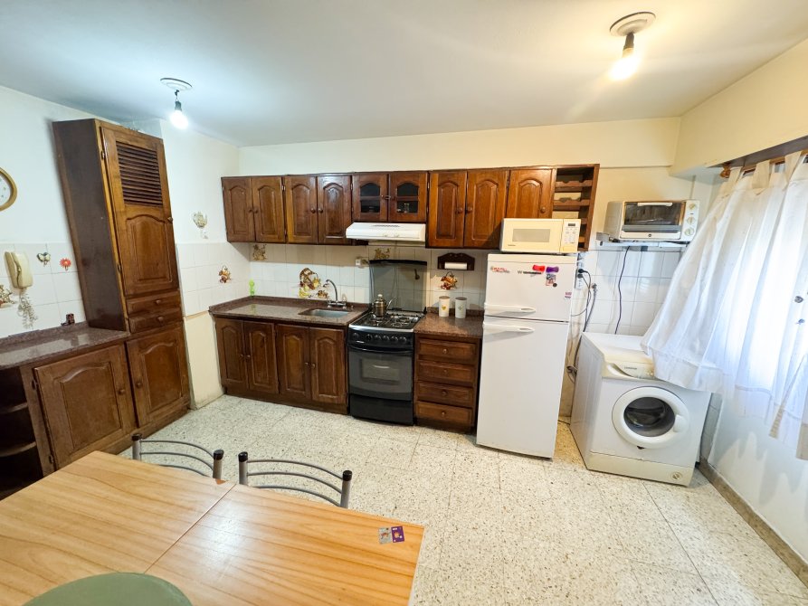 • Cocina separada con Comedor Diario de 4,70 x 3,40 mts. con amoblamiento completo de bajo mesada y alacena de madera con mesada de granito, artefacto de cocina, extractor de aire tipo spar y conexión para lavarropas