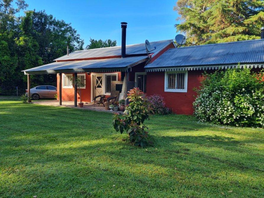 Excelente casa quinta con gran parque. Cuenta con un amplio living, los cuales se dividen en comedor con hogar, cocina con muebles y alacena de madera. Tiene tres dormitorios y dos baños completos, luego cuenta con una cómoda sala de estar. Por otra parte, cuenta con un patio con galería decorado por una enredadera. También tiene un quincho equipado con parilla para excelente clima familiar. Por último, tiene una pileta con una medida de 10x5 metros totalmente equipada.