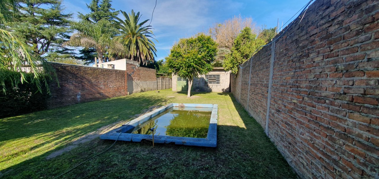 EN EL EXTERIOR CUENTA CON UNA PILETA DE MATERIAL, GRAN PARQUE Y UN GALPON DE 8 METROS DE FRENTE POR 4 METROS DE FONDO, CON TECHO DE LOSA.