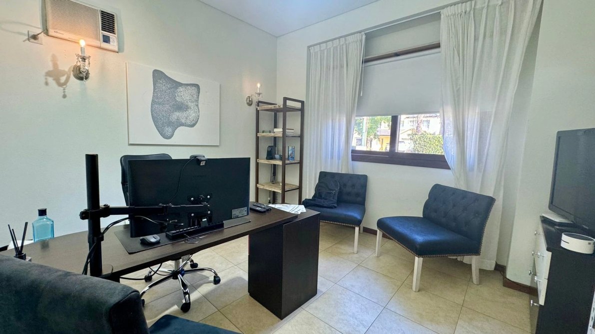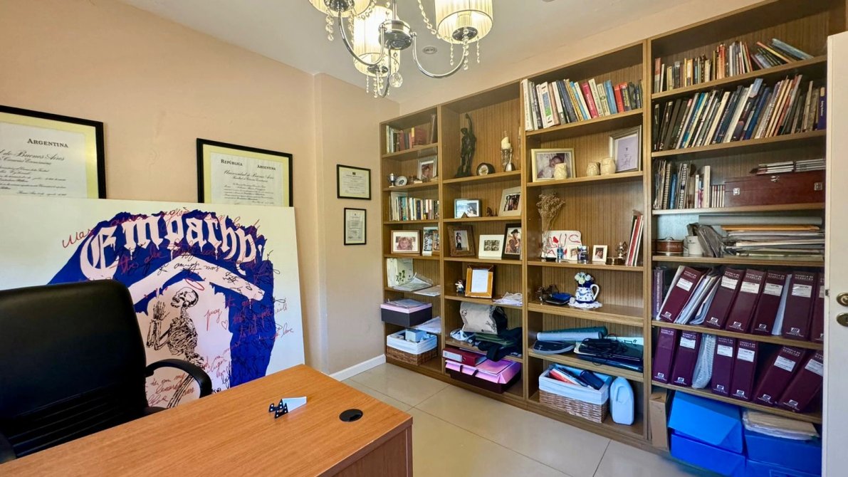 Siguiendo la armonía de la misma planta, un amplio escritorio con estantes y biblioteca y una habitación para Huéspedes con baño completo. Planta Alta:
