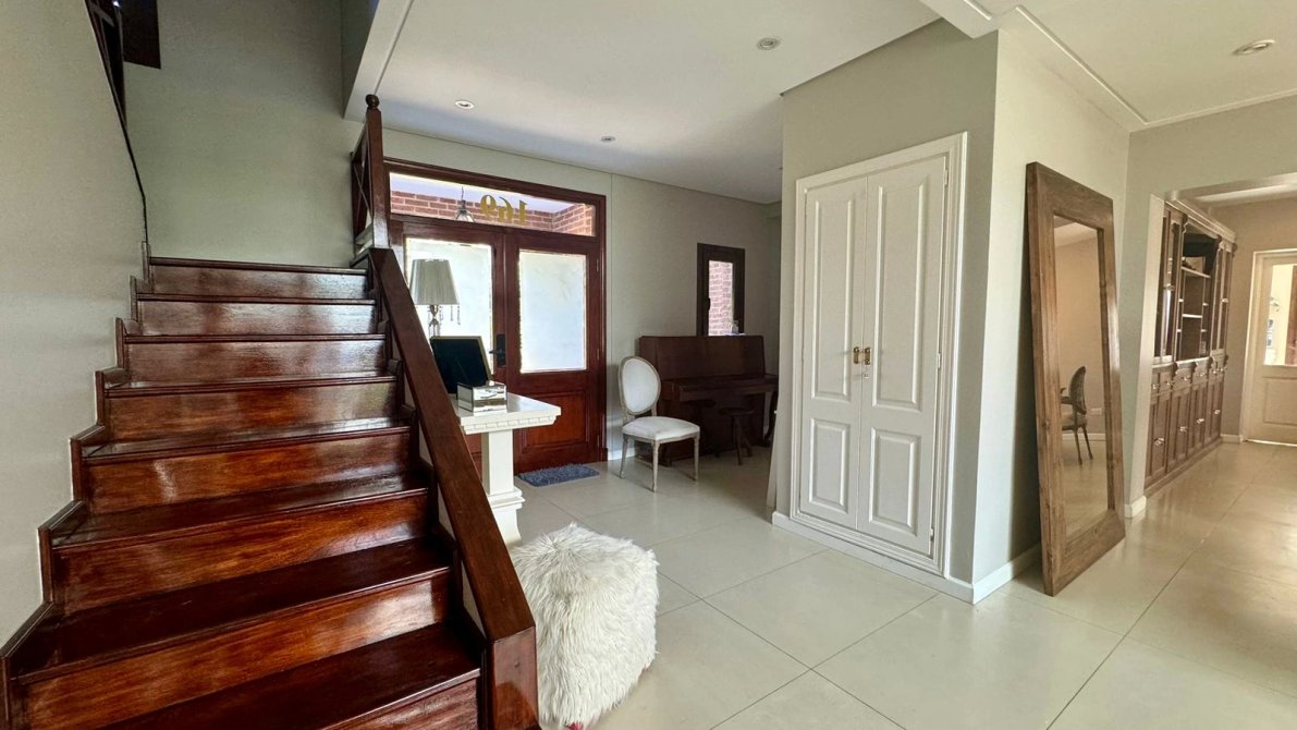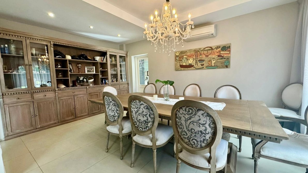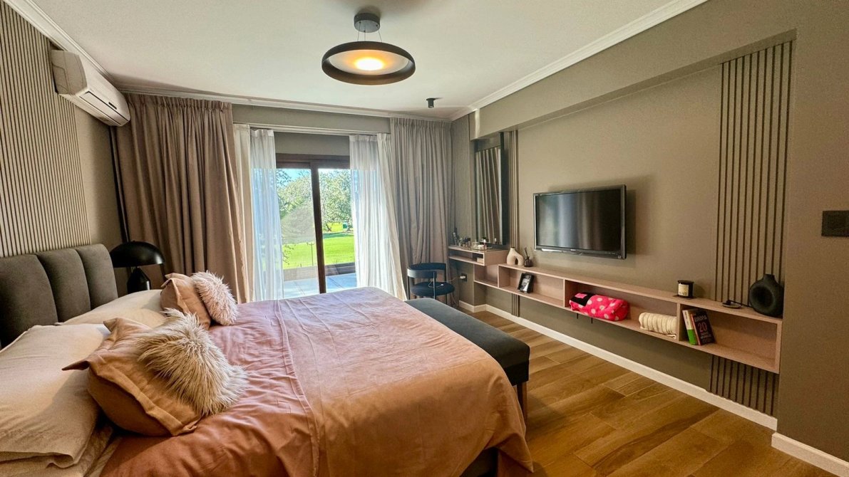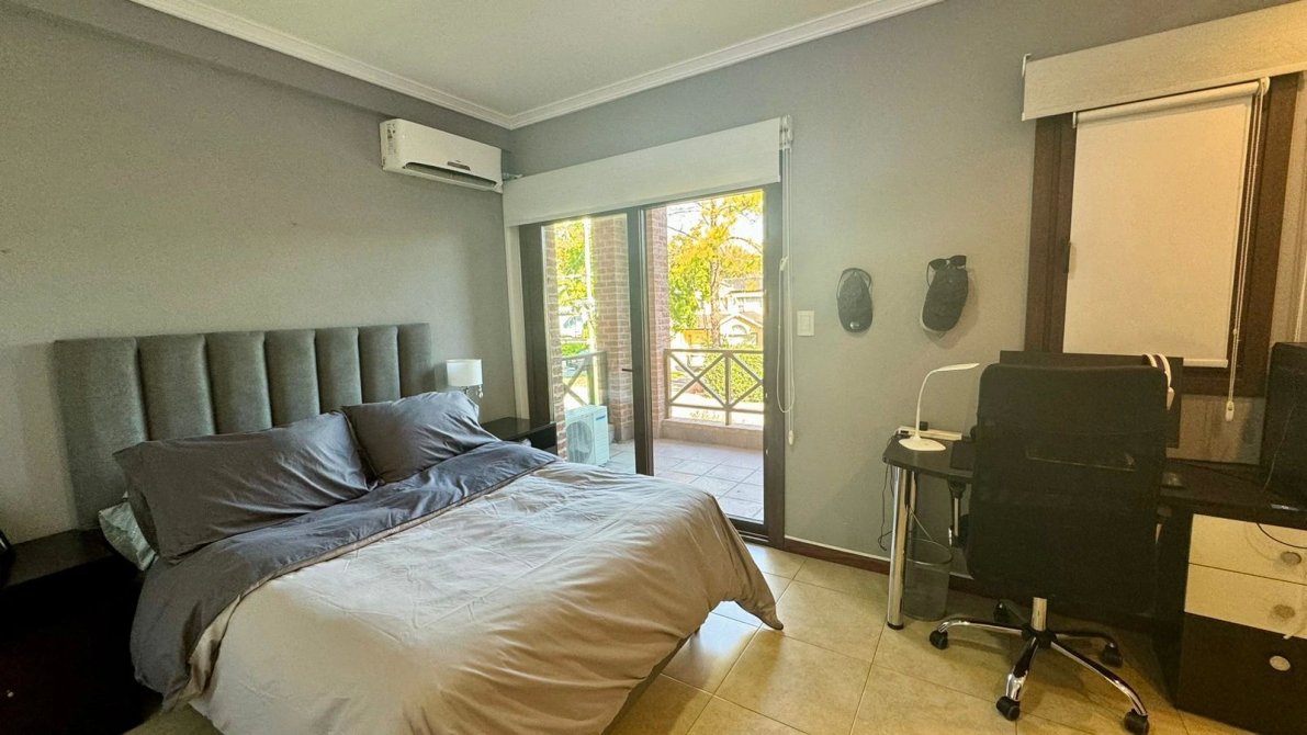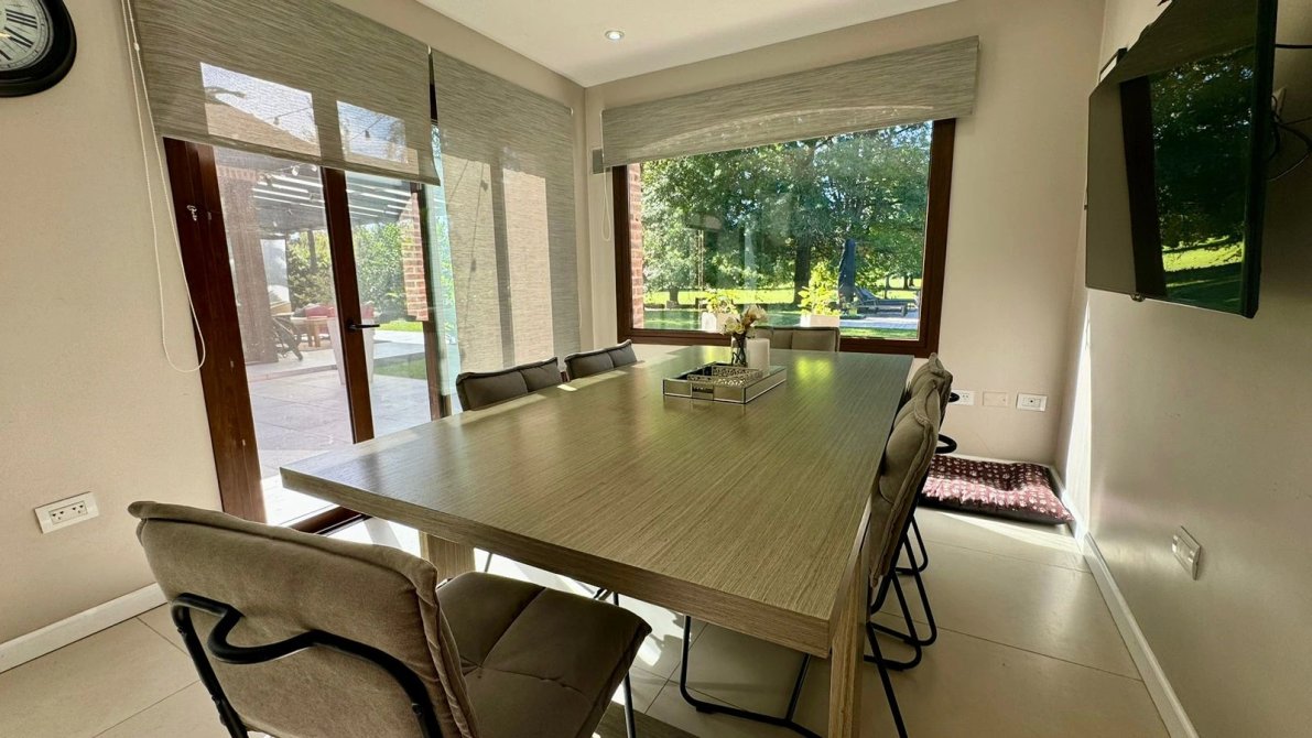 Todas, unidas por un mismo lenguaje de materiales nobles y claros: muebles de buen gusto en todos los ambientes combinando con la calidez destacada en cada sector como el living comedor con sillones grandes, comedor con mesa con sillas tapizadas en pana y mueble vajillero de Fontenla y un sector de TV.