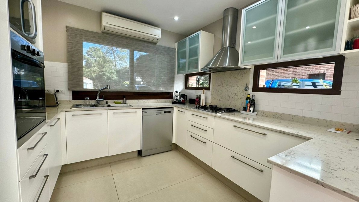 La cocina y el comedor diario en un sector independiente, equipado con muebles de excelente calidad en U, anafe eléctrico, horno empotrado, heladera y lavavajillas.