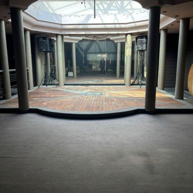 1- Piso: Salón de Eventos para 150 personas, Baños para Hombres y mujeres con pisos y mesadas de mármol. Cabina de DJ, Guardarropas y Pista de baile. Detrás: Varias Zonas de elaboración con hornos y cocinas de AI