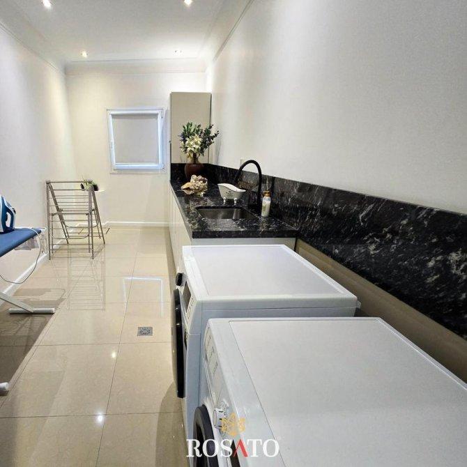Lavadero con gran mesada de trabajo, espacio para 2 máquinas, zona de secado y planchado.