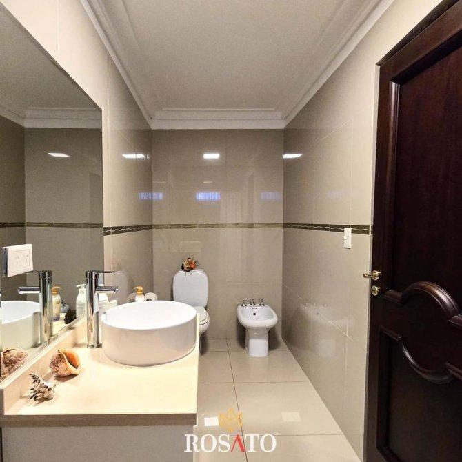 Habitación con baño completo y placard integrado.