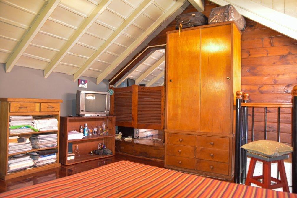 Habitación principal con pisos de madera y placard.