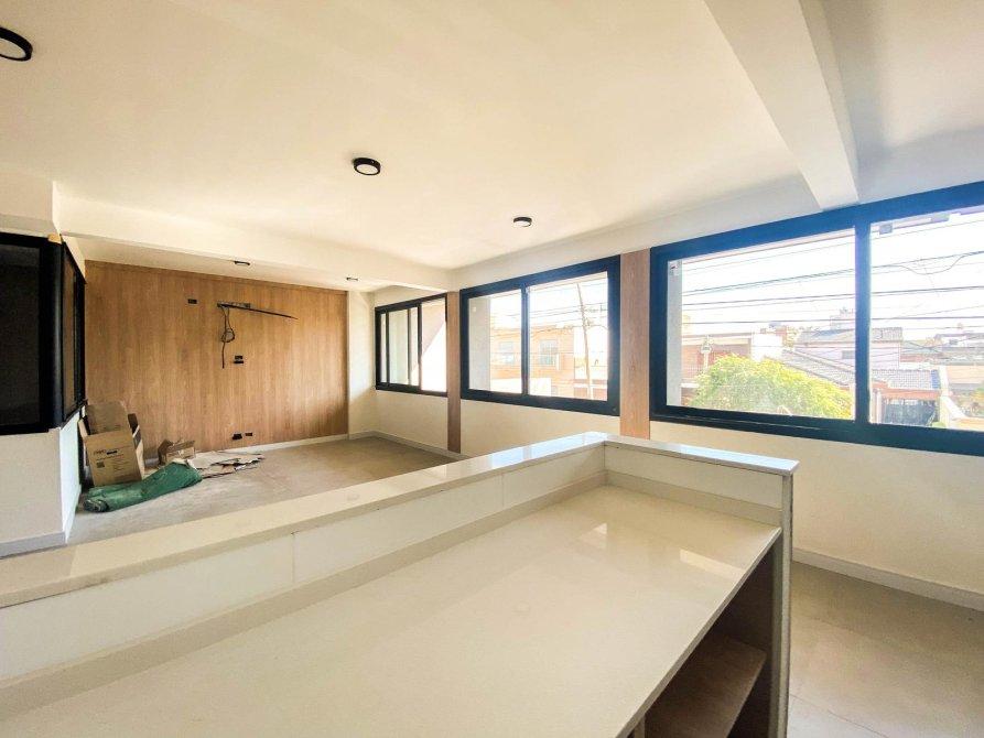 - Living comedor con carpintería metaliza corrediza, la cual permitirá la comunicación entre ambos espacios, revoques en yeso cerámico y pisos de porcelanato.