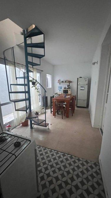 Ingreso por entrada independiente a cocina comedor con mesada, muebles y cocina. Dos dormitorios, baño con ducha. Acceso a planta alta por escalera caracol a lavadero con terraza propia.