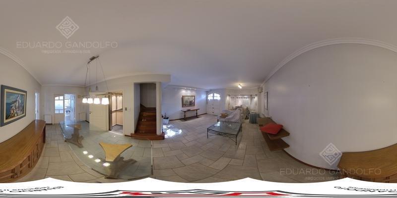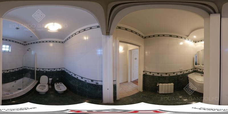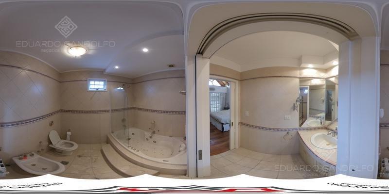 En planta alta: pasillo distribuidor con placard, lavadero, dormitorio principal con pisos de madera tarugada, baño en suite con hidromasaje y vestidor. Dos dormitorios más, ambos con placard empotrado, baño completo y altillo.