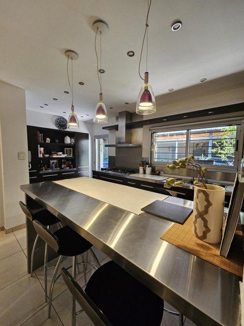 Estar/comedor y cocina integrados 4x12m (Cocina con anafe doble, horno eléctrico, isla de acero inoxidable y amoblamiento de gran calidad). Suite 3,50x4,50 con baño muy amplio, con bañera y ducha. 3 amplios dormitorios, baño instalado nuevo compartimentado, patio, quincho/lavadero/cocina, parrilla. Garage/playroom para dos autos sobre Dr. Melo y garage (tercer vehiculo sobre Quintana).