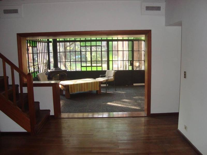 Muy lindo Chalet sobre lote de 17.52 x 55 mts consta de :Living comedor con pisos de madera tarugado,Cocina con muebles de bajo y sobre mesada, en doble circulacion con desayunador en madera,toilette de recepcion con ducha,al frente amplio living con pisos de madera tarugado,Jardin de invierno con hogar a leña,hermosa vista al parque,1er.piso Sala de juegos con alfombra y A.acond.tipo ventana,hogar a leña,2 dormitorios amplios con placard y escritorios a medida,Dormitorio principal en suite con hidromasaje,el inmueble tiene calefaccion central,tiene excelentes detalles de construccion.-Garage amplio para 2 autos,lavadero con mesada y bacha.-Hermoso parque con piscina,palmeras etc,quincho con parrilla y baño con ducha,galpon cerrado con mesa de trabajo.-Actualmente Alquilada.