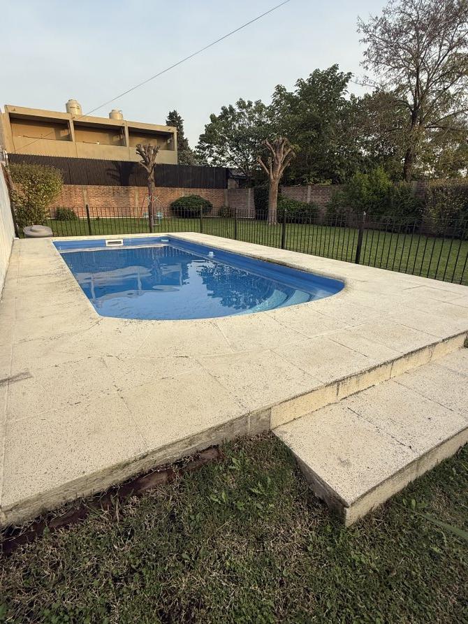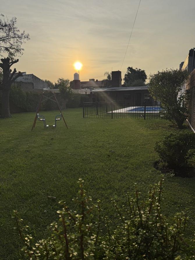 Excelente propiedad sobre lote de terreno de 13 metros de frente por 50 metros de fondo. Medidas aproximadas. Amplio living comedor, cocina con barra. Cuenta con tres habitaciones muy cómodas con placard empotrado. Garage cubierto y semicubierto. Piscina rodeada con piso antideslizante. Galería semicubierta con parrilla. Amplio parque. Ubicada a pocas cuadras de la estación de Rafael calzada, cuenta con todos los servicios. Digna de ver!!!