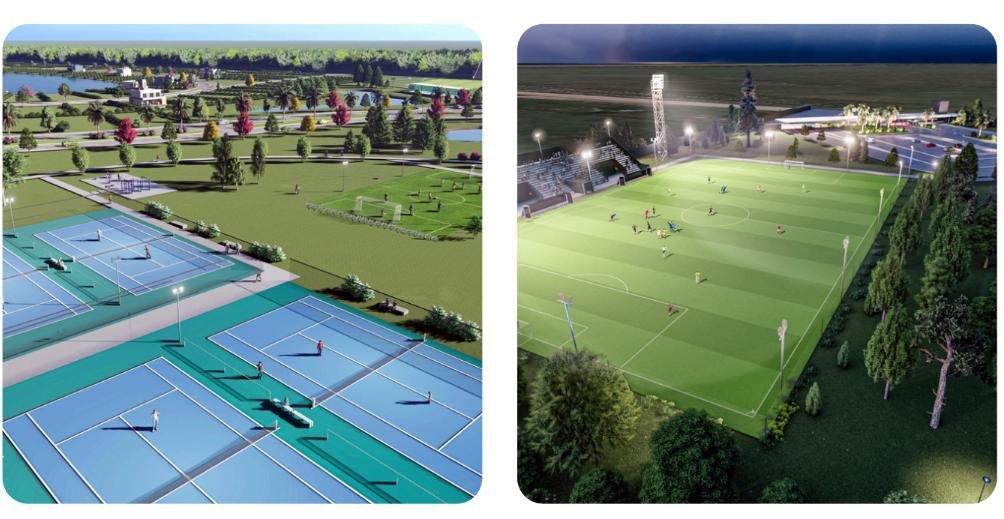 • Cancha de Futbol 11 con tribuna e iluminación y vestuarios independientes