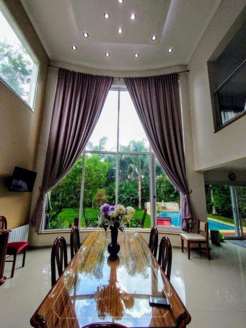 *Living comedor en doble altura con hogar a leña.