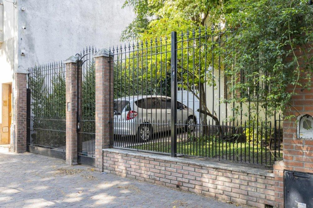 - Frente con reja y espacio para un auto.