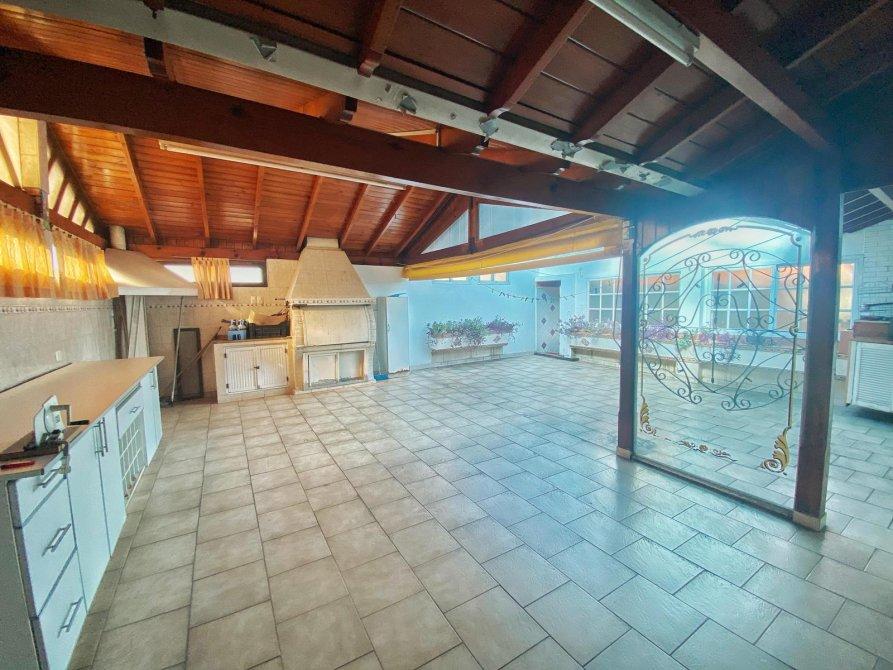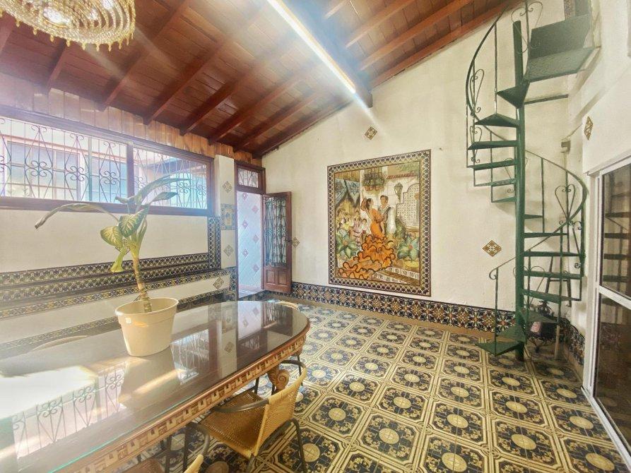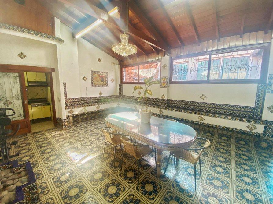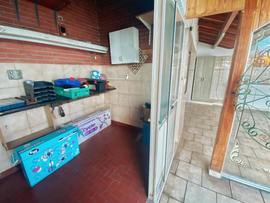 Saliendo del espacio con estilo español accedemos por medio de una escalera a un patio semicubierto, donde funciona un quincho, ideal para reuniones con familia y amigos.