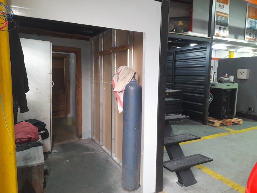 Muy lindo galpon de 204 metros cuadrados, con oficinas y baño, entrepiso, pequeño fondo libre, piso de hormigón,  Techos de losa.