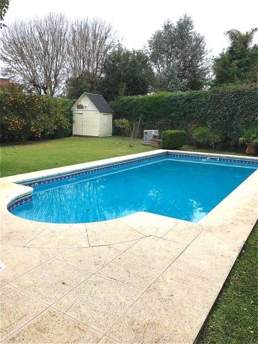 Exterior : piscina revestida totalmente con venecitas con equipo climatizador , parque , galeria que puede cumplir funcion de garaje , entrada para vehiculos