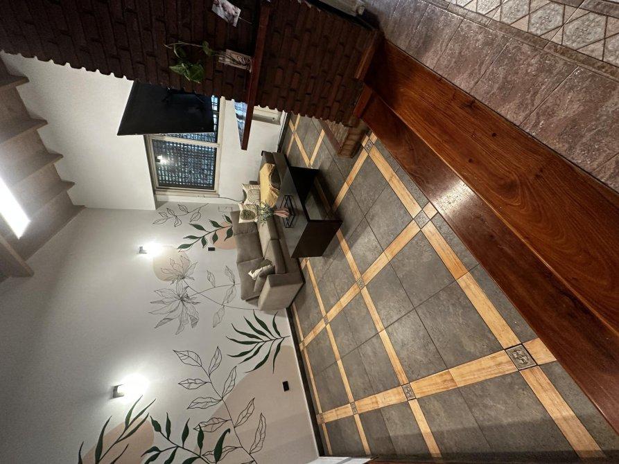 La casa se distribuye en dos plantas. En la planta baja, encontrará una entrada con espacio para guardacoche (tanto descubierto como cubierto), un amplio salón y comedor, una cocina luminosa, un baño completo, un lavadero, un patio y un quincho con horno.