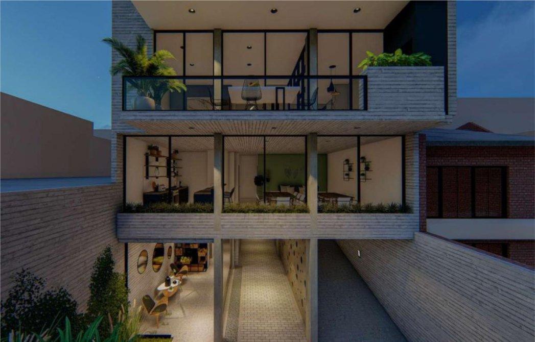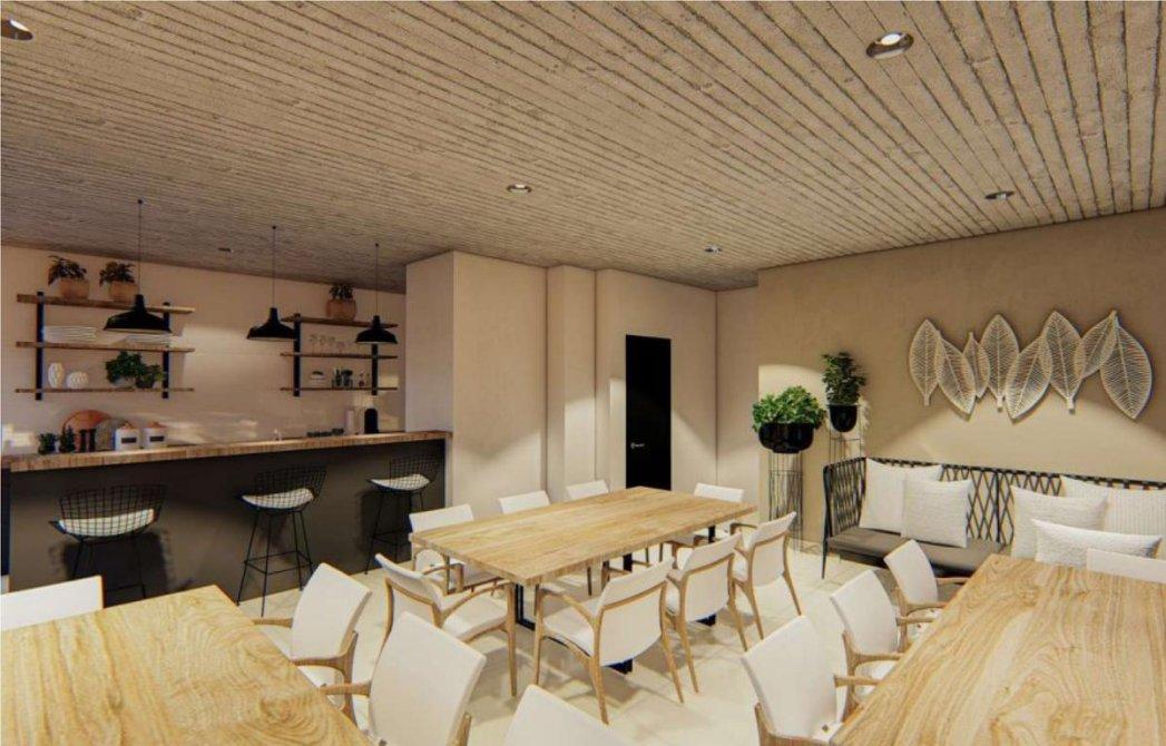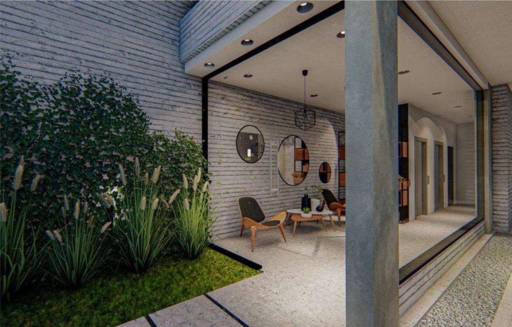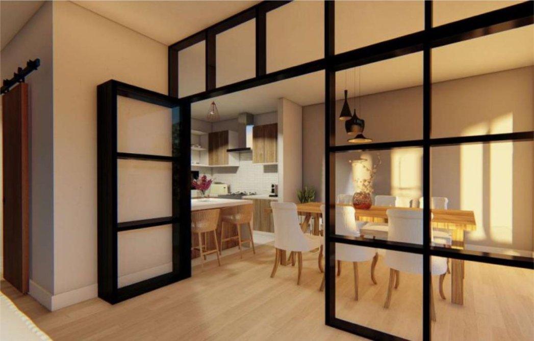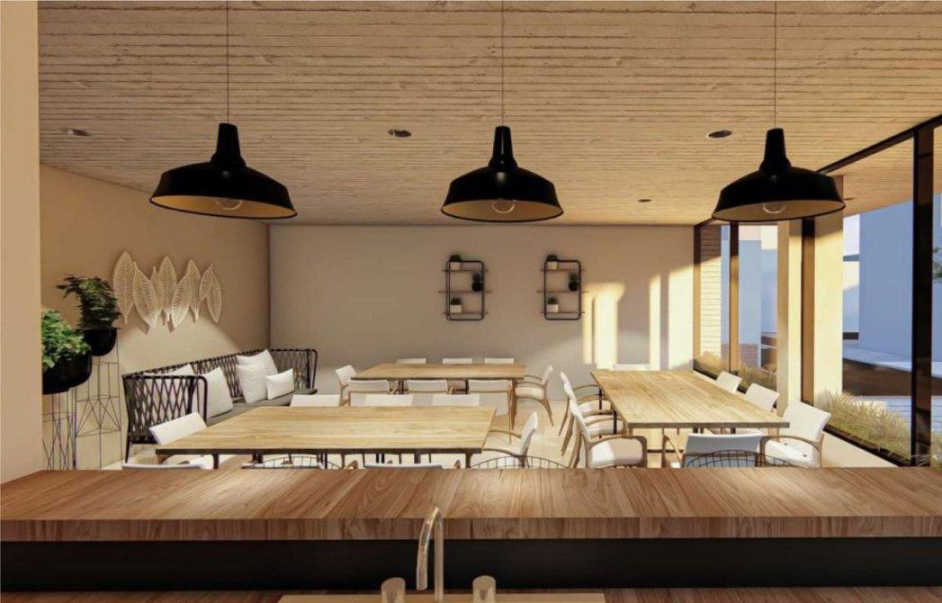 - Living comedor con carpintería metaliza corrediza, la cual permitirá la comunicación entre ambos espacios, revoques en yeso cerámico y pisos de porcelanato.