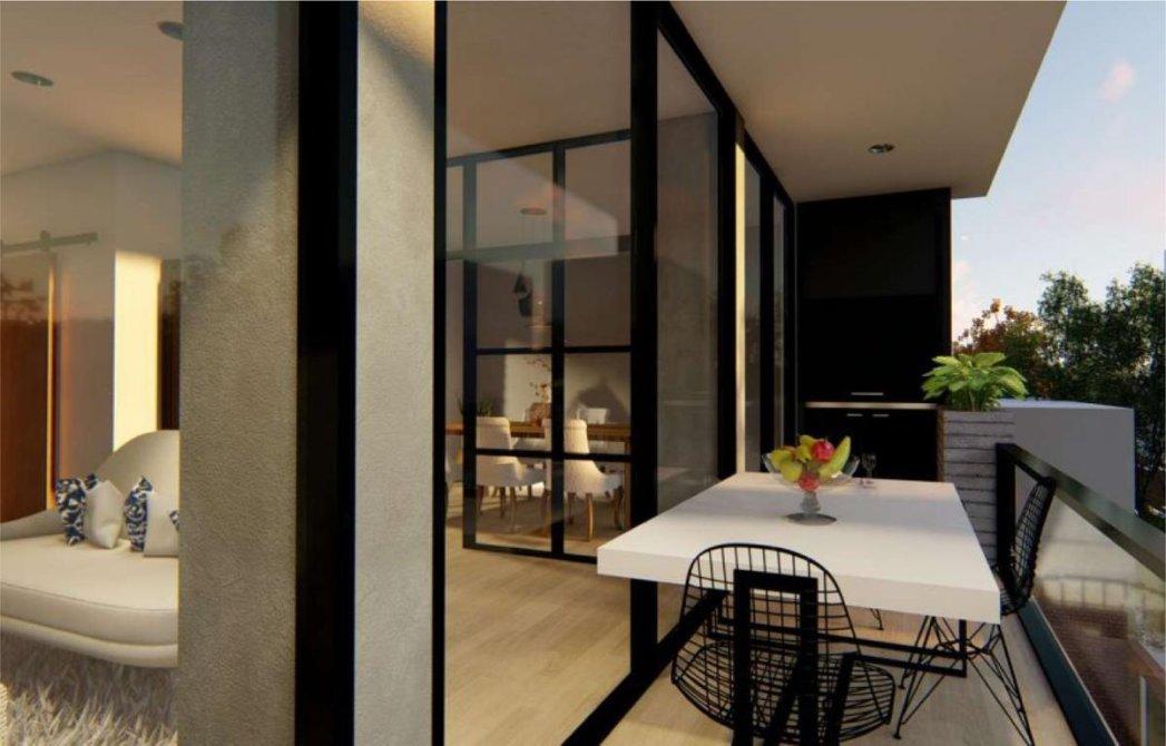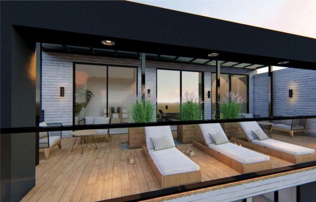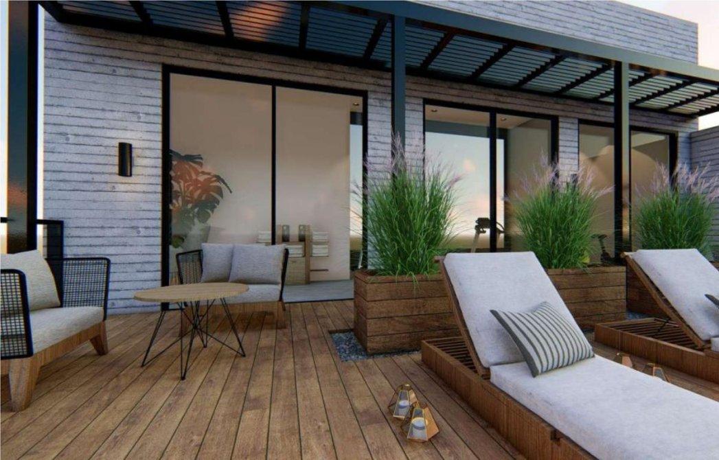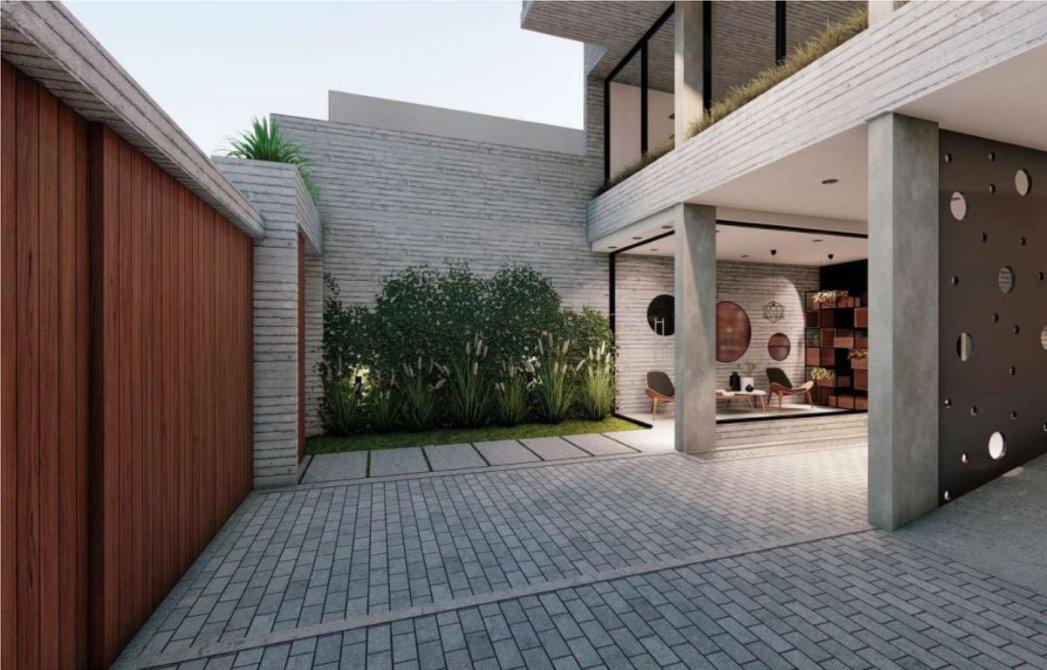 - Amplios balcones al frente y al contra frente, con baranda de aluminio y vidrio de seguridad laminado, con parrilla a gas con frente metálico levadizo de cierre, con puertas de 0,60 mts. Provista. En el balcón de frente, al lado de la parrilla se construirá un macetero para que el impacto visual de la parrilla disminuya.
