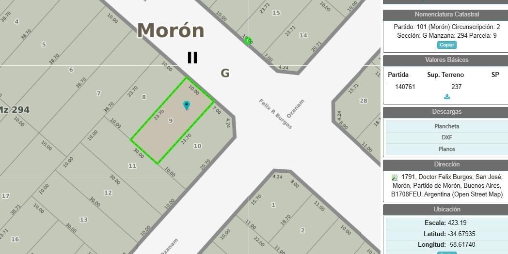 Terreno en venta 237m2 Moron Sur | BuscadorProp