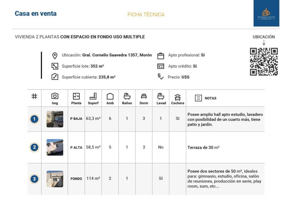 Se trata de un inmueble desarrollado en dos plantas sobre un lote propio de 352 M2
