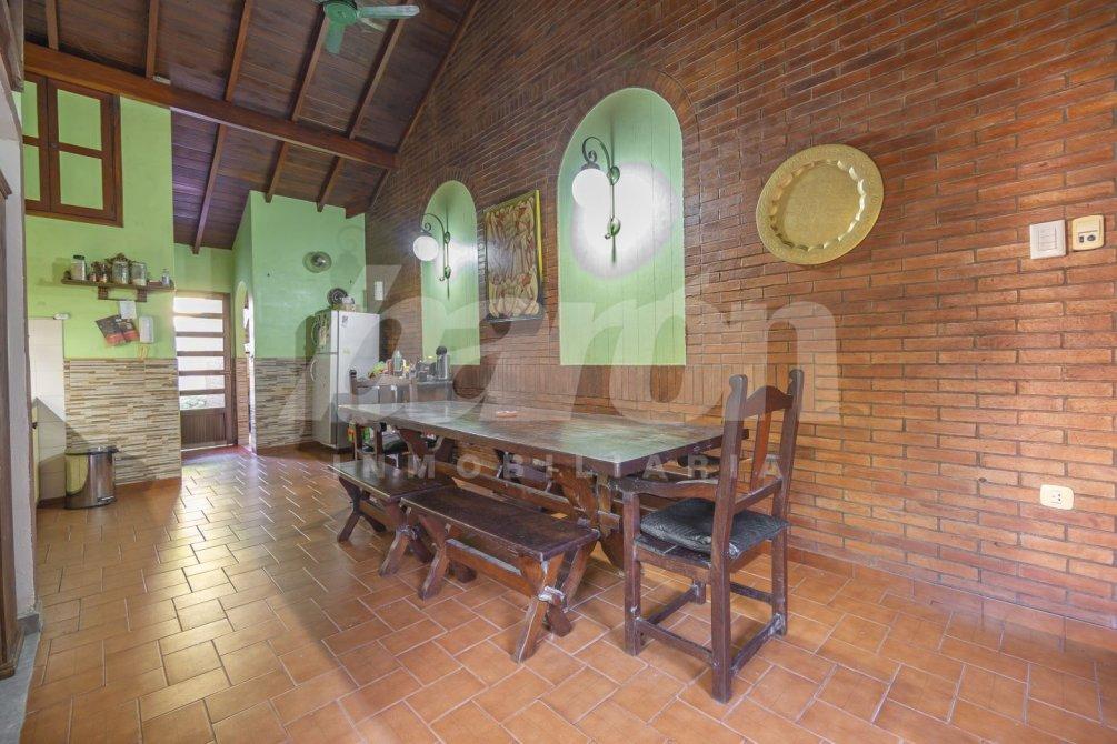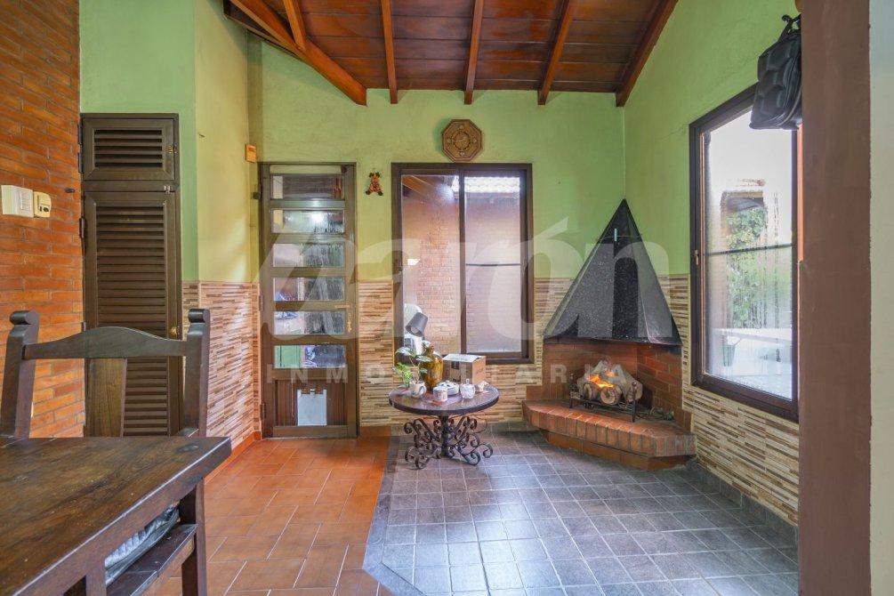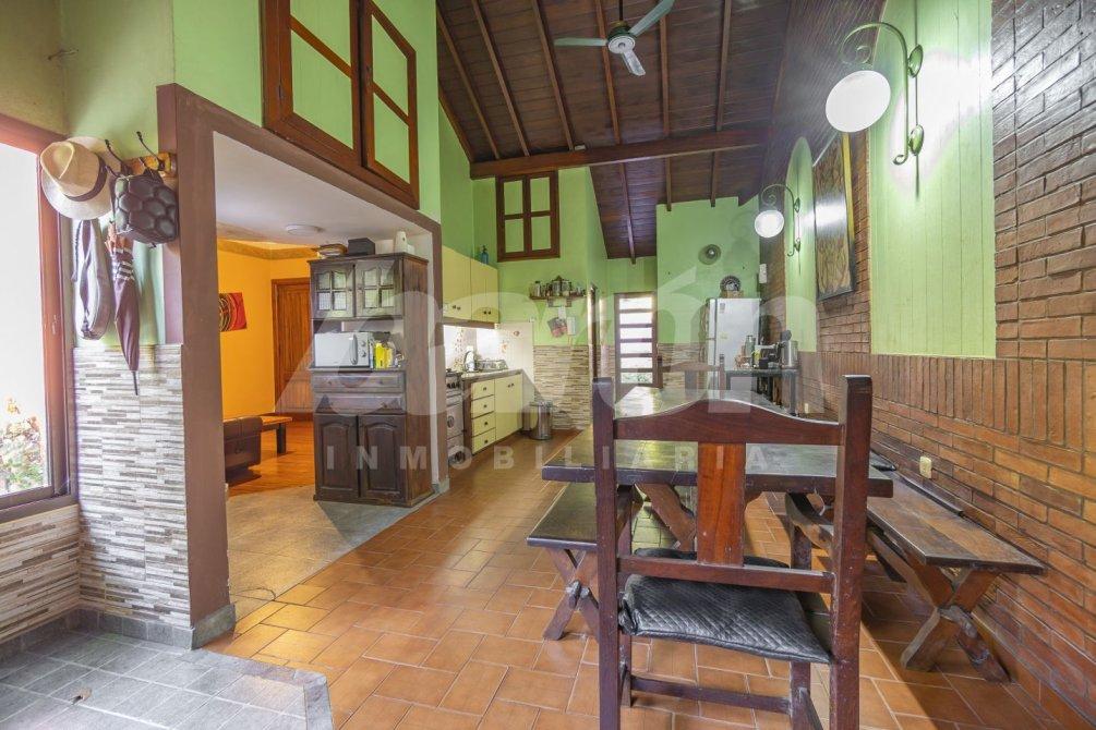 Al frente, la propiedad se destaca por un gran parque parquizado que rodea la vivienda, junto con espacio de cochera cubierta, aportando comodidad y un entorno natural único.