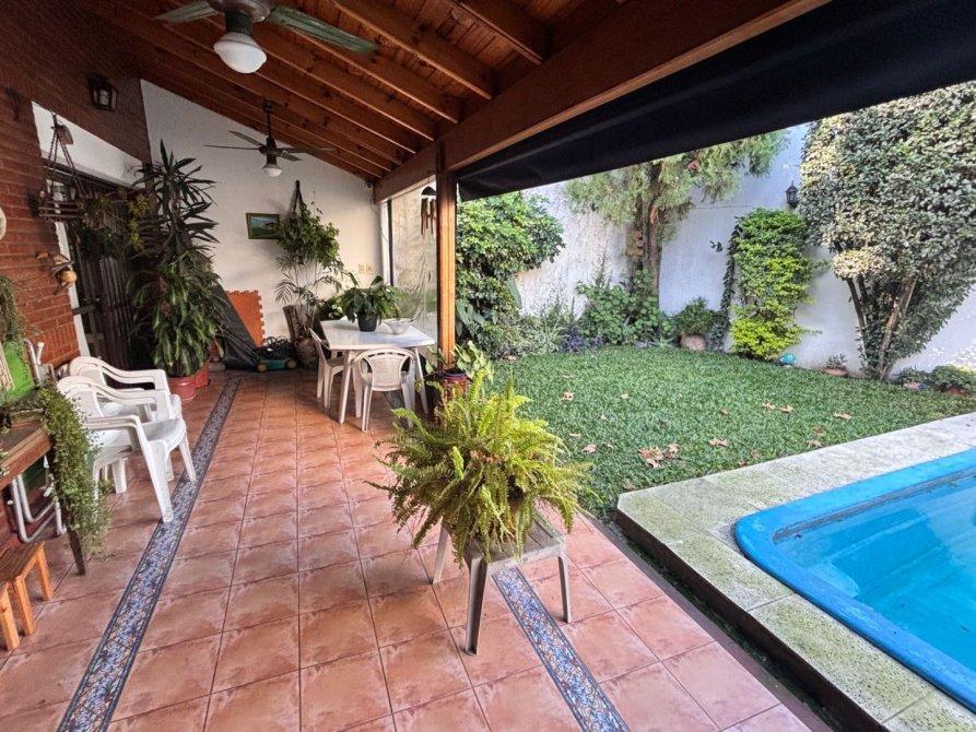 Venta de Casa en Velez Sarsfield, Capital Federal. Hermosa casa de cuatro ambientes en dos plantas, compuesta por: PLANTA BAJA: cochera, hall de ingreso, living, comedor con cocina integrada equipada con gran bajomesada, toilette y lavadero, galería con parrilla, patio y piscina, PLANTA ALTA: dormitorio principal con vestidor y balcón, segundo dormitorio con placard, baño completo y escritorio-playroom que puede ser cerrado para ser utilizado como tercer dormitorio.