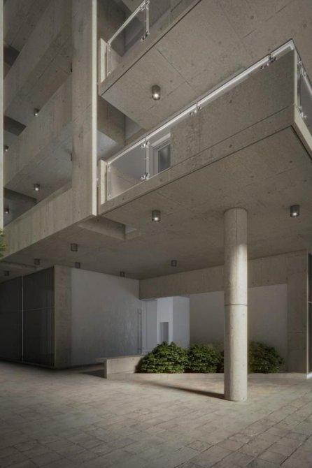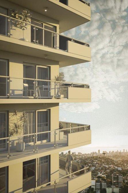 - Balcón de vidrios y hormigón.