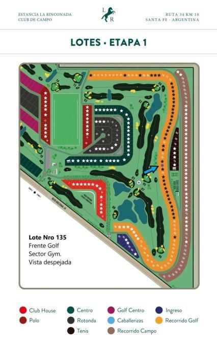Lote Nro 135 1.000 m2 Frente 20 x 50 mts de Fondo. Sector al frente del lote donde se encuentran piscina, canchas de padel, tenis, fútbol, gimnasio.- Excelente vistas al contrafrente del Golf, forestación... Los mejores atardeceres..