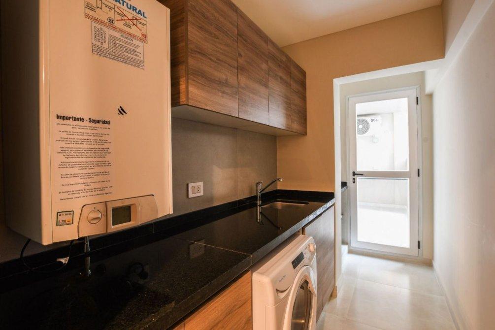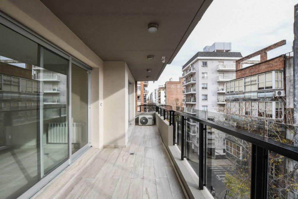 Unidades a estrenar Semipisos de 3 dormitorios, ventilación cruzada y con amplios balcones al frente, cocina separada con comedor diario, balcón contrafrente con parrillero, lavadero independiente, 3 baños (uno de ellos en suite). Construcción y detalles de categoría con pisos de porcelanato o madera, paredes enduidas en yeso, pintadas al látex con molduras en cielorraso, cocina totalmente equipada con alacena y muebles bajo mesada, cocina, caldera y purificador instalados, mesada de granito y espacio técnico para heladera, aberturas de aluminio con DVH, puertas interiores en madera, placares con interiores colocados, cajonera, barral y estantes. Baños totalmente terminados con todos los artefactos, bañera hidromasaje y accesorios colocados, revestimientos en porcelanatos y cerámicos. Instalación para equipo de aire acondicionado Split incorporada. Calefacción por caldera y radiadores instalados.