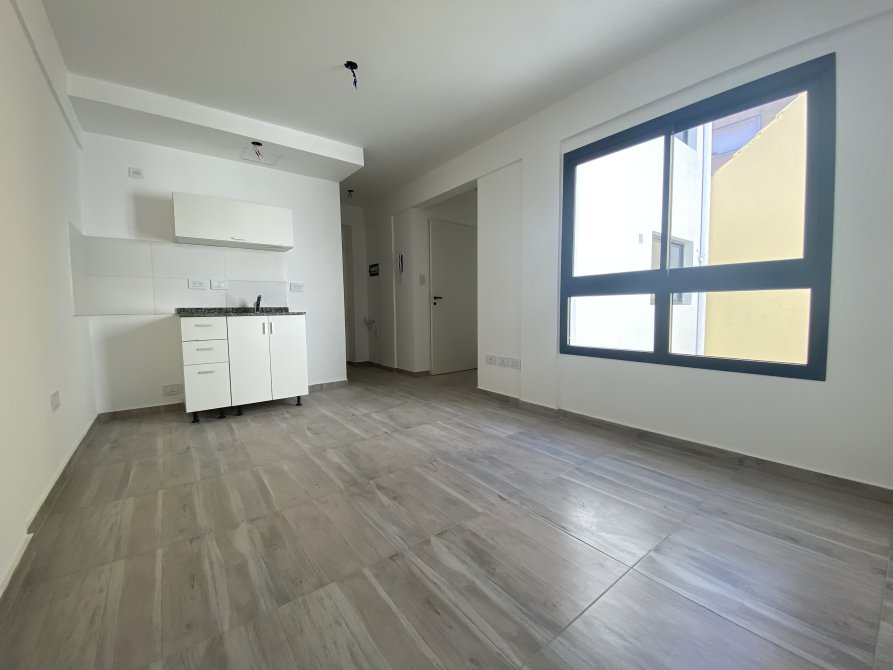 Hermoso departamento de 1 ambiente, en primer piso, por escalera, cocina con mueble alto y bajo mesada Y baño completo. Luminoso.