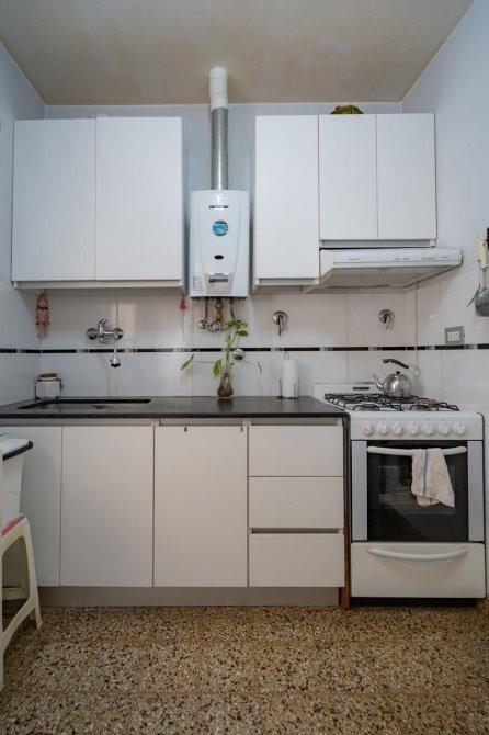 - Cocina con pisos de granito, amoblamientos completos (bajo mesada y alacena), artefacto de cocina y vista al patio.