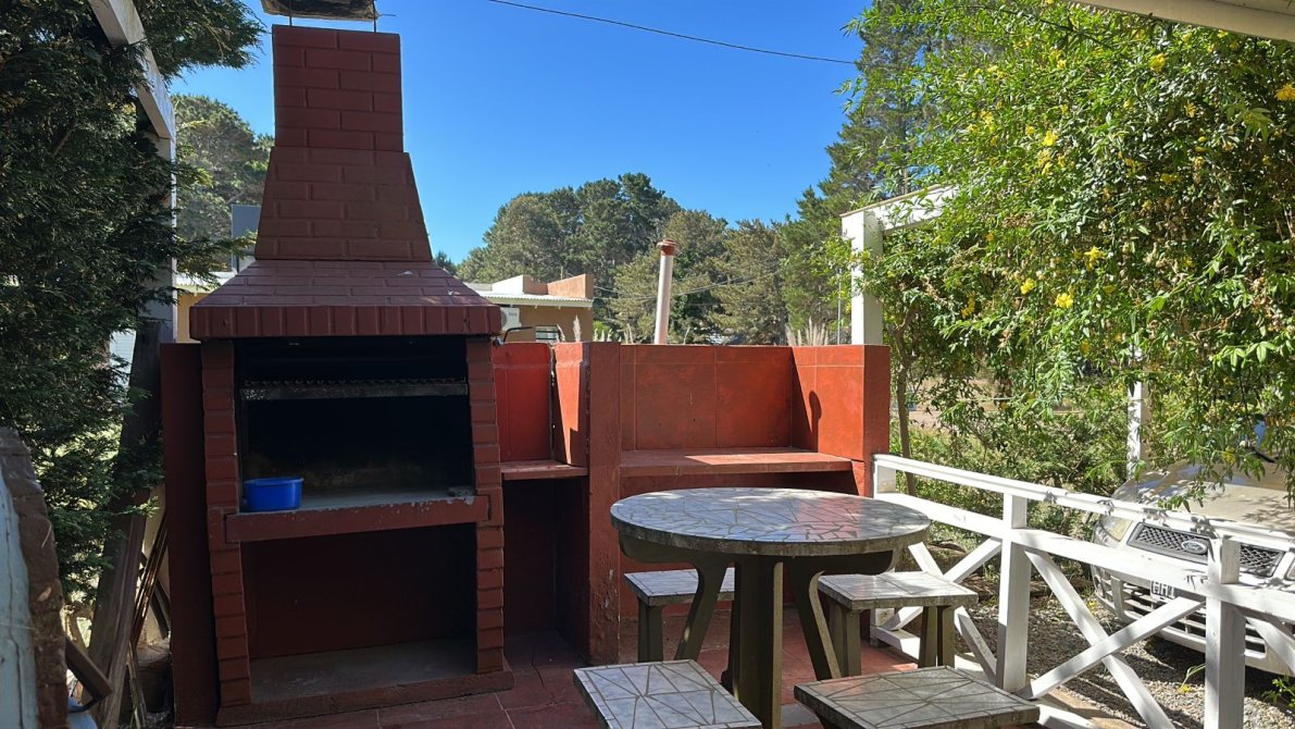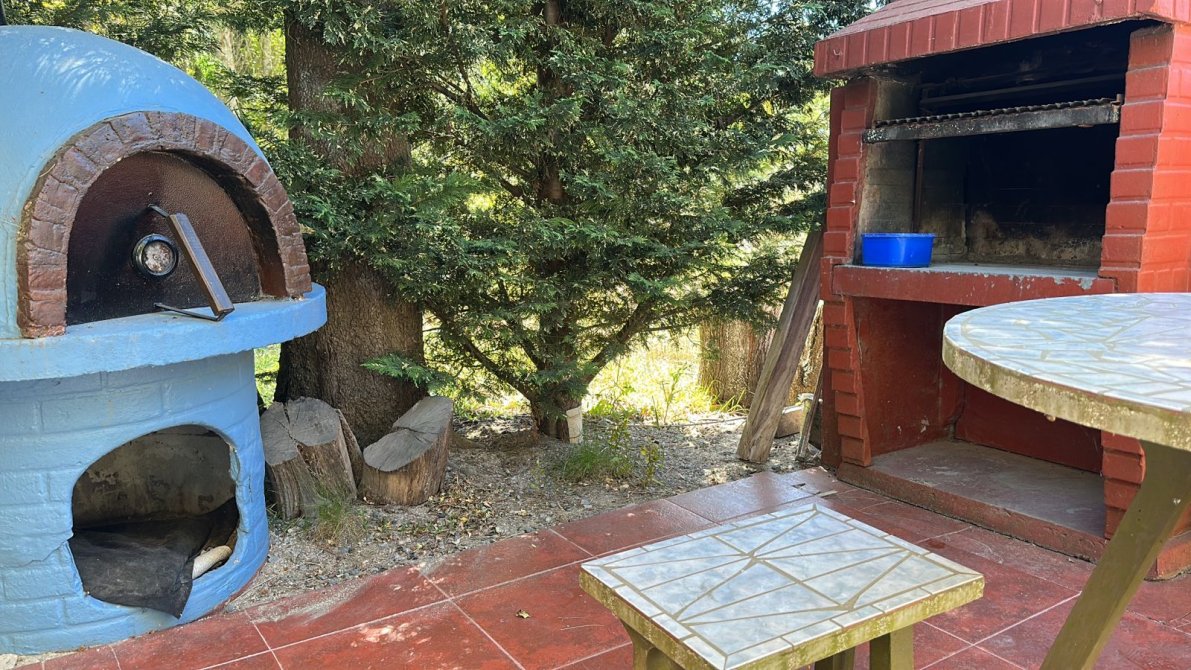 Jardín con parrilla y horno de barro, perfecto para reuniones al aire libre. ??