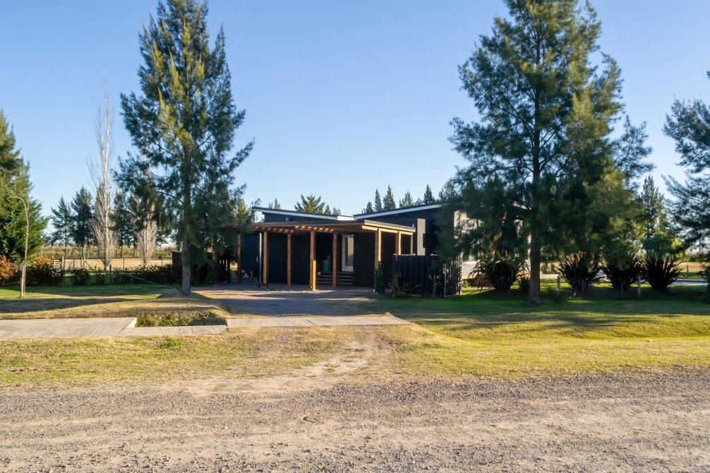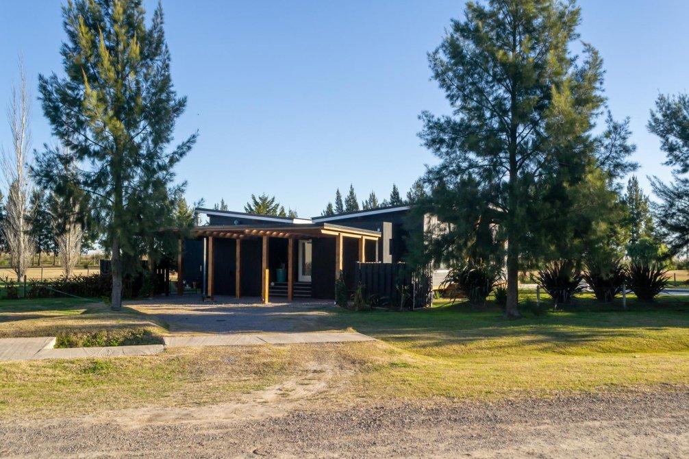 La construcción se realizó bajo el sistema americano elevado sobre pilotes, lo que permite una excelente aislación térmica, manteniendo un balance térmico óptimo en el interior de la vivienda. El lote está completamente cercado y cuenta con una destacada forestación.