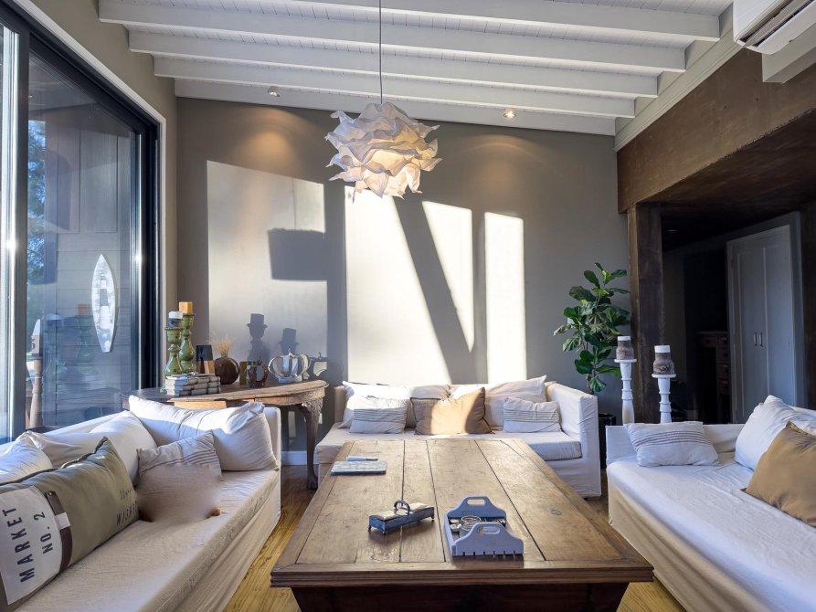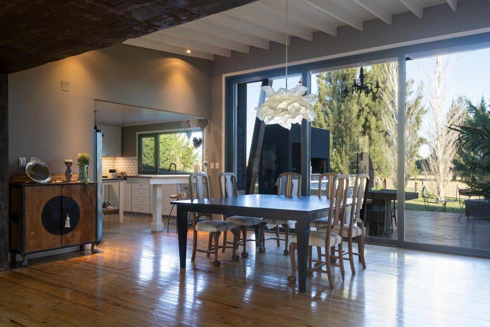 Generalidades: Solados y revestimientos Interior entablonado en madera natural Baños. Pisos en porcelanatos y paredes hasta 90 cm en listones de madera. Mesadas en marmol grafito en cocina y lavadero.  Amoblamientos frentes e interios de placard y vestidor completos. Cocina de estilo con baja mesada y alacena en tablero laquedada. Amoblamientos Anafe a gas y horno electrico.  Purificador y bachas de 1ra calidad Conexion lavavajillas y lavarropas. Griferias de 1ra linea en cocina baños y lavadero. Carpinterias de PVC negras de piso techo en todos los ambientes con dvh premiun refrigeracon y calefaccion por AA en todos los ambientes. Generador a Gas Riego por Aspersion Piscina de diseño revestida en piedra bali.