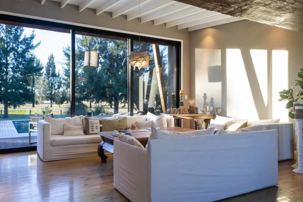 Ubicada en un lote de características únicas, esta propiedad se desarrolla íntegramente en una planta. Con fondo al campo de golf y frente a un espejo de agua, la casa se encuentra rodeada de naturaleza y con muy pocos vecinos, lo que brinda un entorno de gran privacidad y tranquilidad.