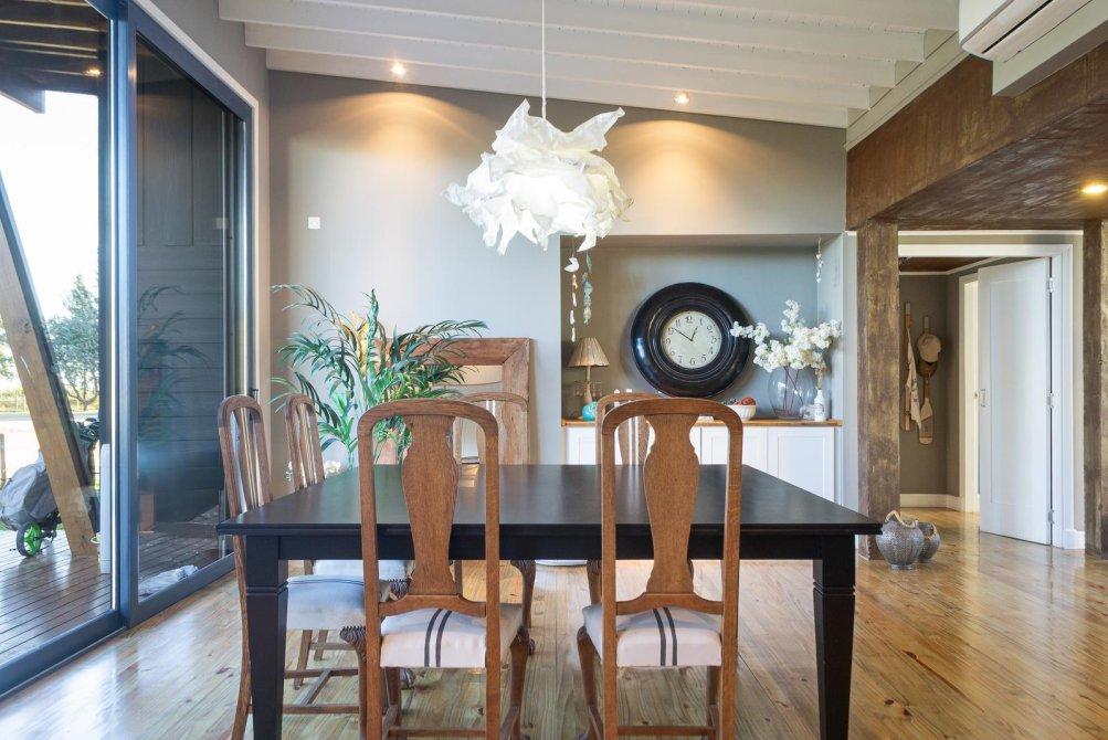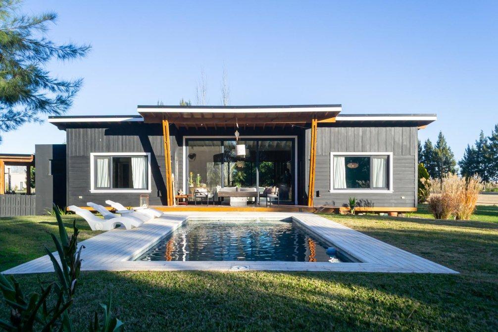 La casa fue diseñada con el objetivo de integrar todos los ambientes con el entorno natural, aprovechando al máximo la luz y las vistas. En el exterior, cuenta con una cochera semicubierta para dos vehículos, un sector de secado de ropa, gabinete con generador a gas y espacio de guardado. El jardín está parquizado con ejemplares arbóreos y sistema de riego por aspersión, y la piscina revestida en piedra Bali se encuentra integrada al deck de madera.