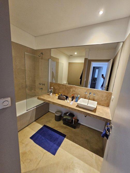 Pisos flotantes (se están x reemplazar en recepción, actualmente cemento) y porcelanato en baños. 3 splits para frío y calefacción x losa radiante separada x ambiente. Cochera doble en PB (nro 413). Aberturas DVH de aluminio. El completo cuenta con  un gimnasio y una pileta grande en común.