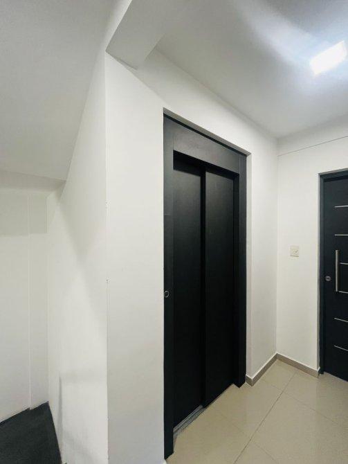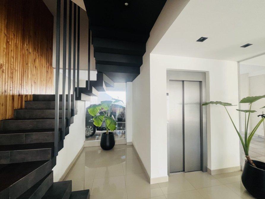 Edificio con hall de entrada y ascensores.