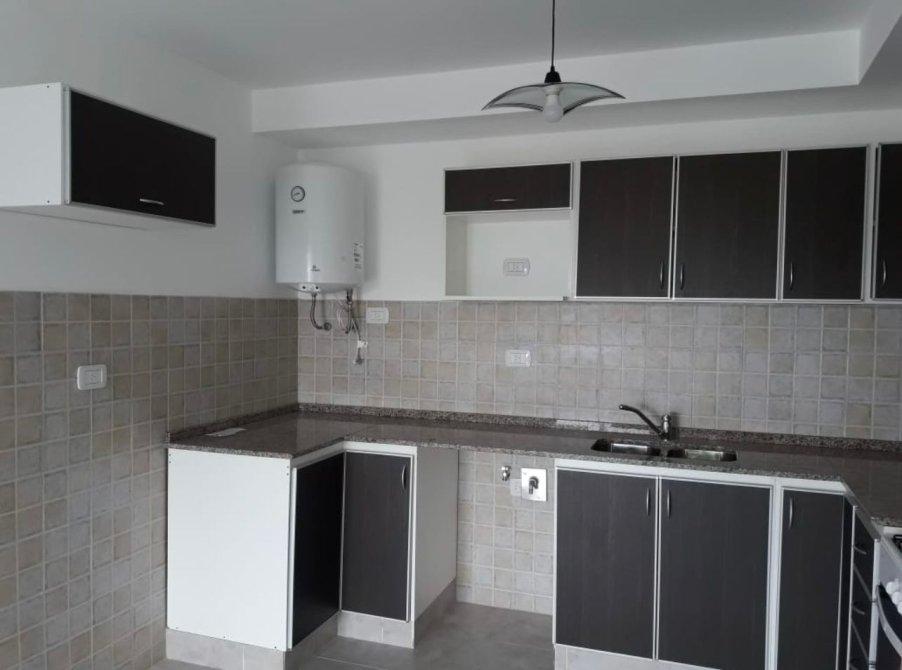 -Cocina integrada con muebles de bajo mesada, alacenas, termotanque eléctrico, artefacto de cocina e instalación para lavarropas.