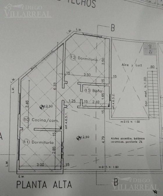 MÁXIMO PAZ 1006,CASTELAR, 2 CUADRAS DE AV.ESTANISLAO ZEBALLOS.Planta altaEntrada independiente por el patioCerramiento 3,50 x 4.79 (techo de chapa transparente y cerramiento de aluminio pintado de blanco con vidrio).2 dormitorios3,50 x 3,50 3.00 x 2,85Cocina comedor 2.90 x 6.33 Baño con ducha Patio semi-cubierto con lavaderoBalcón, todas las aventuras con rejas y alarma.Techo de tejas francesas.