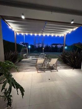 Exterior Trasero: Jardín con vegetación bien cuidada, galería con parrilla completa, espacio disponible para piscina.