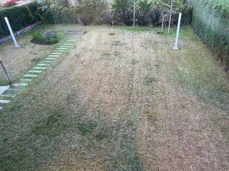 Riego por aspersión en jardín.